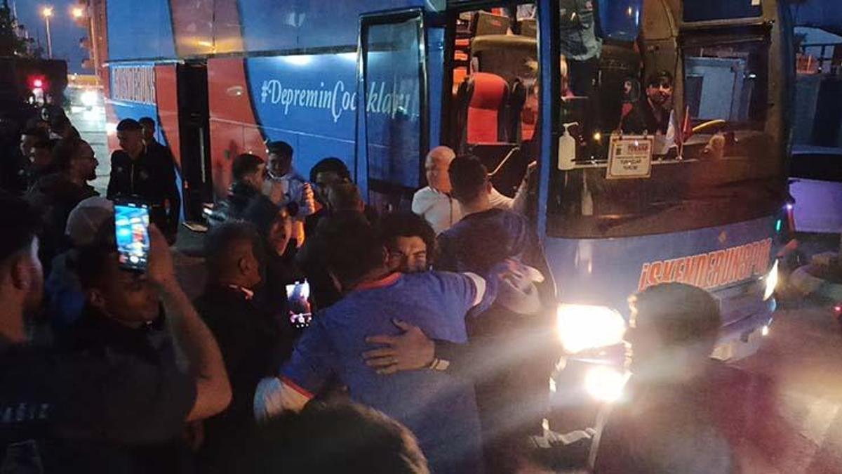 İlçedeki kıyı bandı boyunca taraftarların sloganlarıyla ilerleyen İskenderunspor ekip otobüsündeki sportmenler da taraftarları alkışladı.